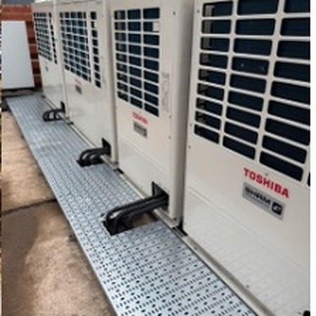 A six-floor law office needed new cooling, fresh air and lighting while casework continued. Our engineers removed eighty ageing fan-coil units and installed a Toshiba heat-recovery VRF network feeding slim ducted terminals.